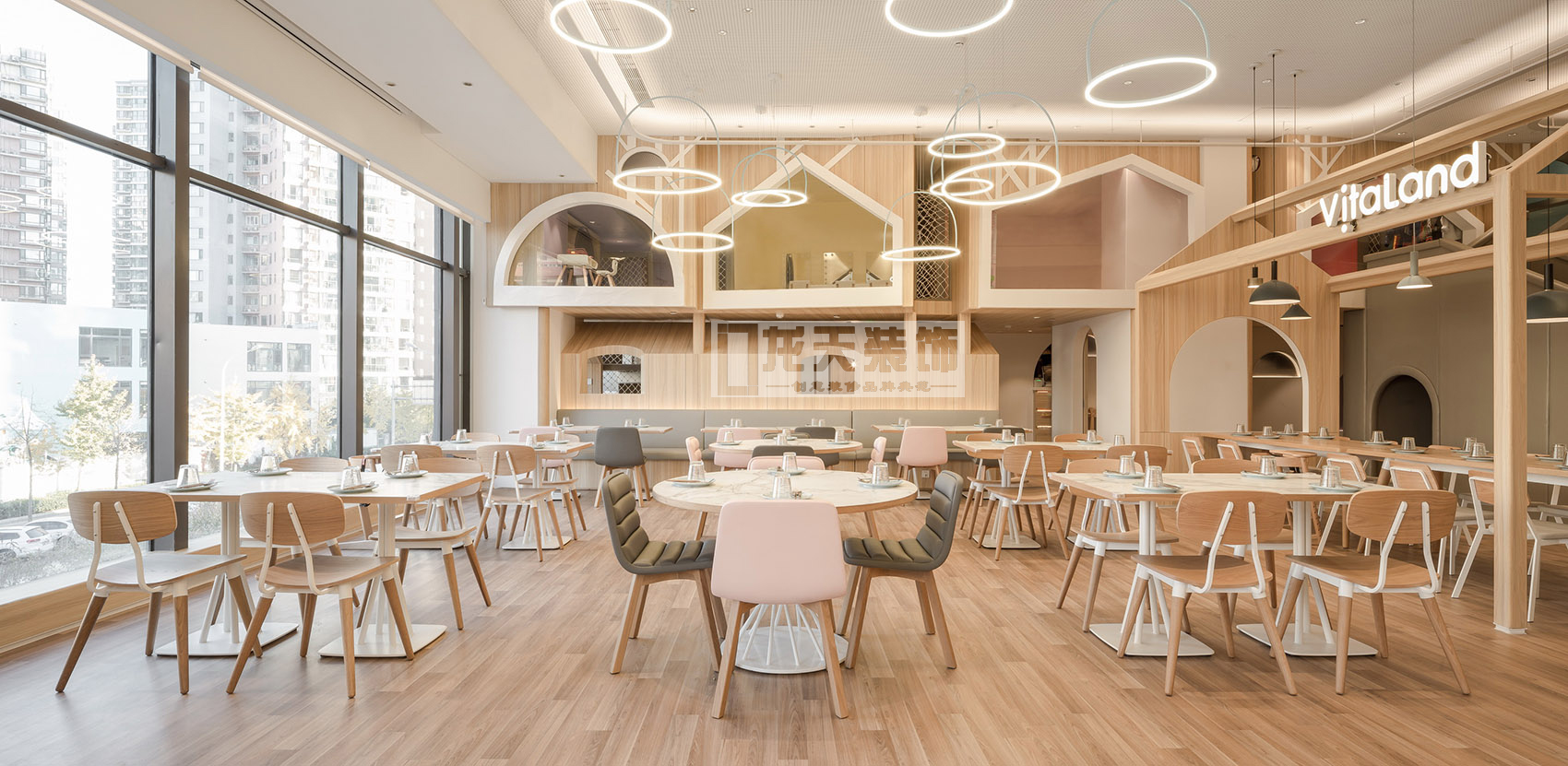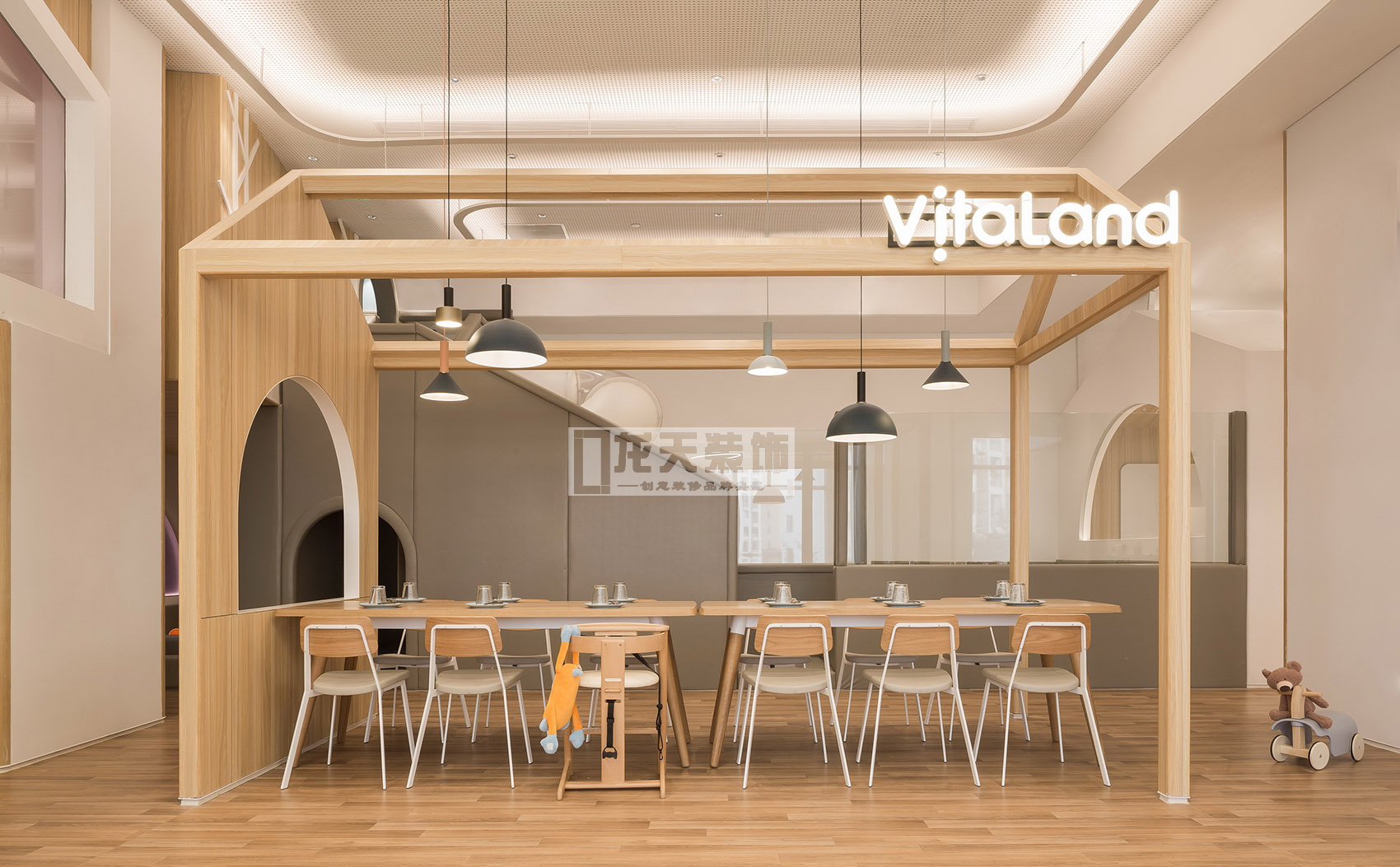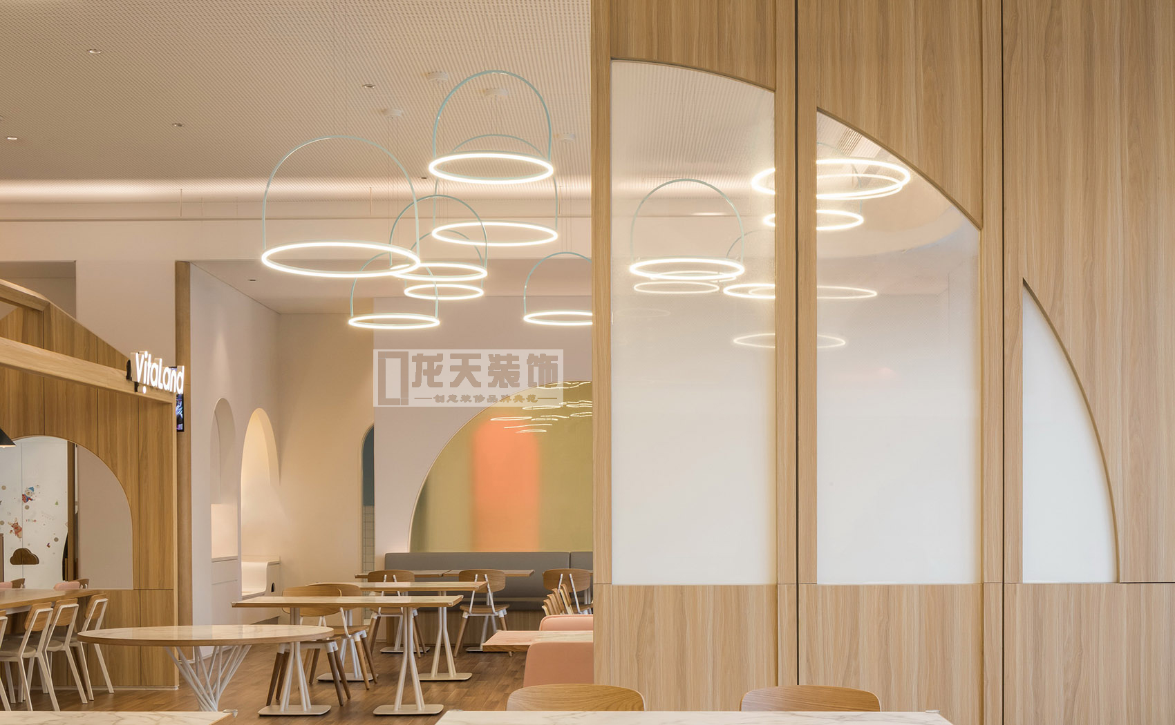 古魯奇所設計的維塔蘭德親子餐廳,并不走當下流行的夸張設計的網紅路線,清新如天堂的風格考慮更多的是小朋友的使用,而不是為了讓父母拍照。