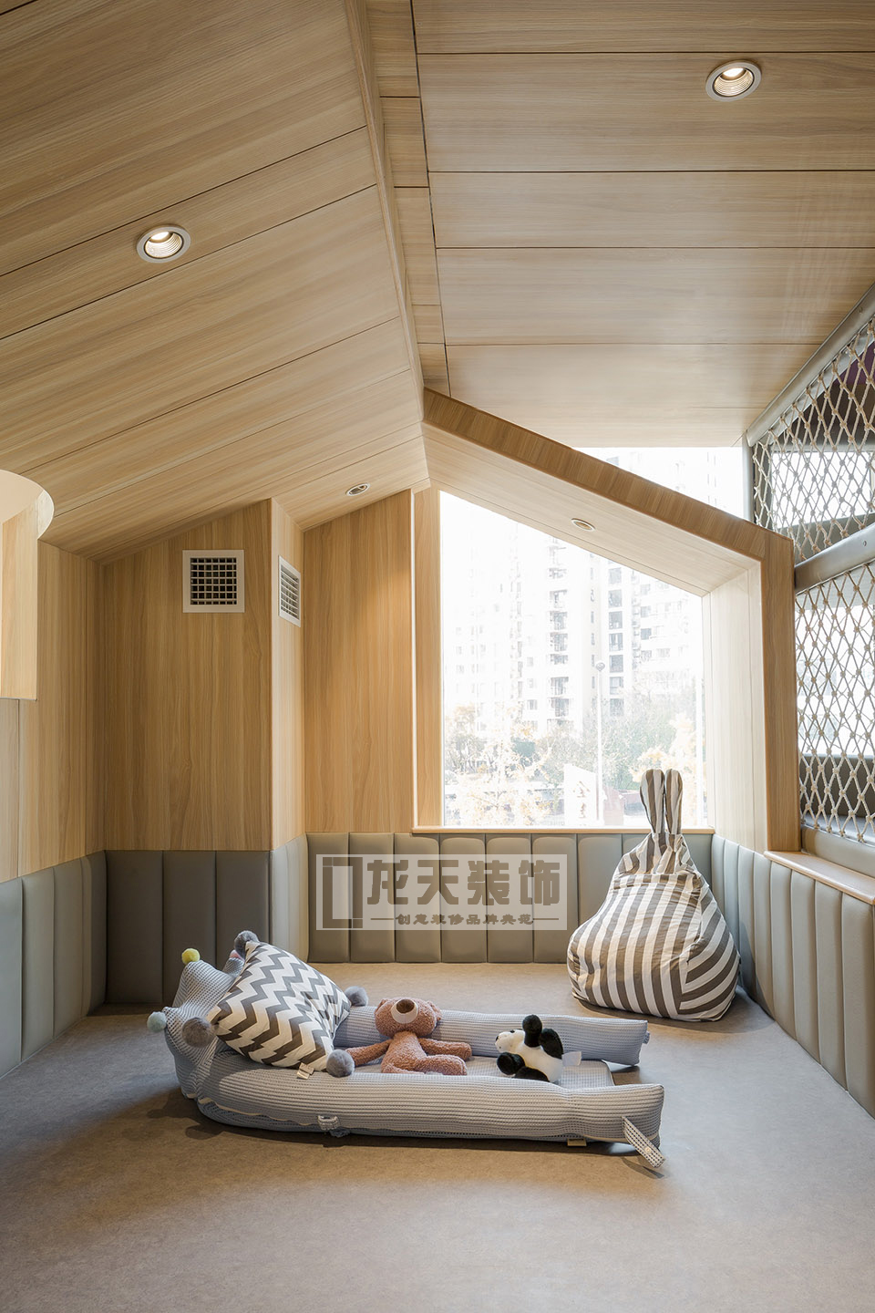 在空間上設計師將目光投放在了孩子本身對高高低低的可以攀爬的空間比對五顏六色的地方更感興趣的天性上,將空間生動有趣高低錯落起來,試圖營造出能讓孩子們自娛自樂“野蠻生長”的空間,也好讓父母們偷得浮生半日閑。